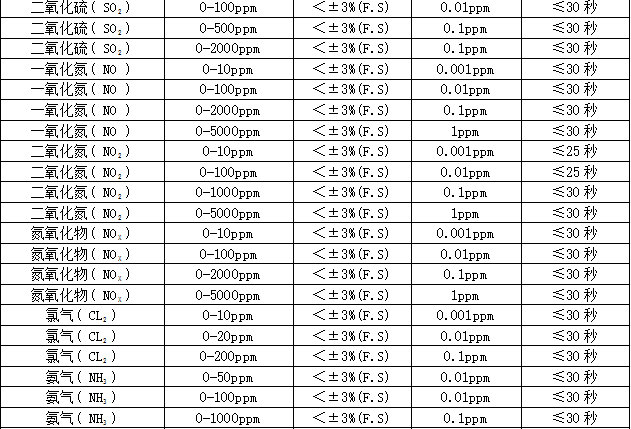 檢測(cè)范圍:0~1、10、100、1000、5000、50000、100000ppm、200毫克/升、100%LEL、20%、50%、100%Vol可選,其他量程可訂制。